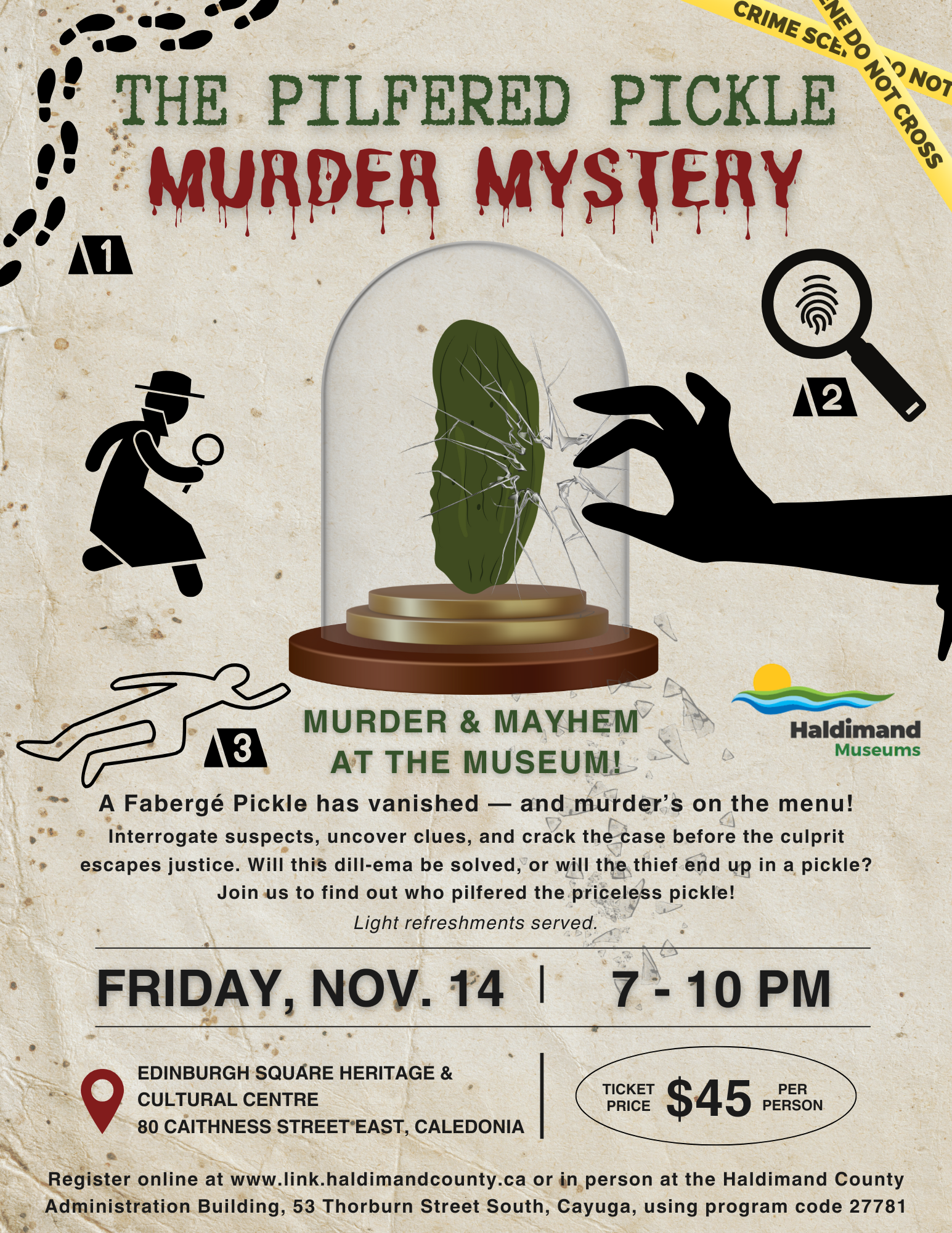 Join Haldimand Museums and discover who pilfered the priceless pickle.